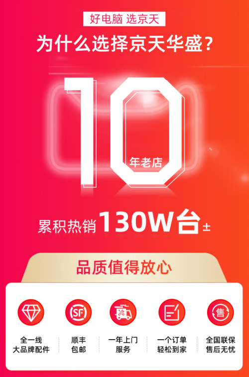 京天华盛作为著名的DIY主机制造品牌,利用互联网的技术,联动线上线下的资源整合、优势互补,是用新电商+新媒体的高度结合,京天华盛10年品牌经营,累计热销130W台,为上万家企业累计17万+用户提供办公解决方案,累计服务10000+家企业机构,京天华盛凭借多年的线上线下相结合的实战经验,开创了DIY电脑主机行业的新格局,广泛的渠道、透明的配置、低廉的价格、贴心的服务,都是京天华盛的品牌优势,这些优势使得京天华盛无论是在业内还是业外都创造了良好的口碑,为消费者提供新品及优惠折扣商品,带来优质的购物体验。